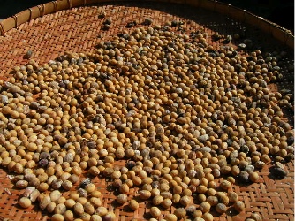 ひなたぼっこしつつ大豆を分ける