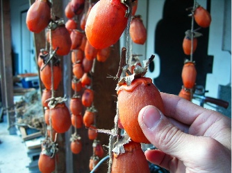 干し柿を揉む
