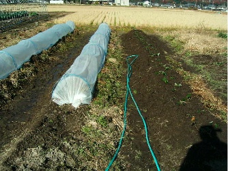 上、左はエンドウ、右はタマネギの苗であるが、なんかおかしい。エンドウは消滅したし、タマネギも極めて顔色が悪い。数日観察していると、はたと気がついた。冬越し野菜なので籾殻を撒いてマルチングしてあるのだが、そのなかに米も残っていると見え、それを鳥がついばみにくる。そのついでに、鶏の足で苗が蹴散らかされているのだ。